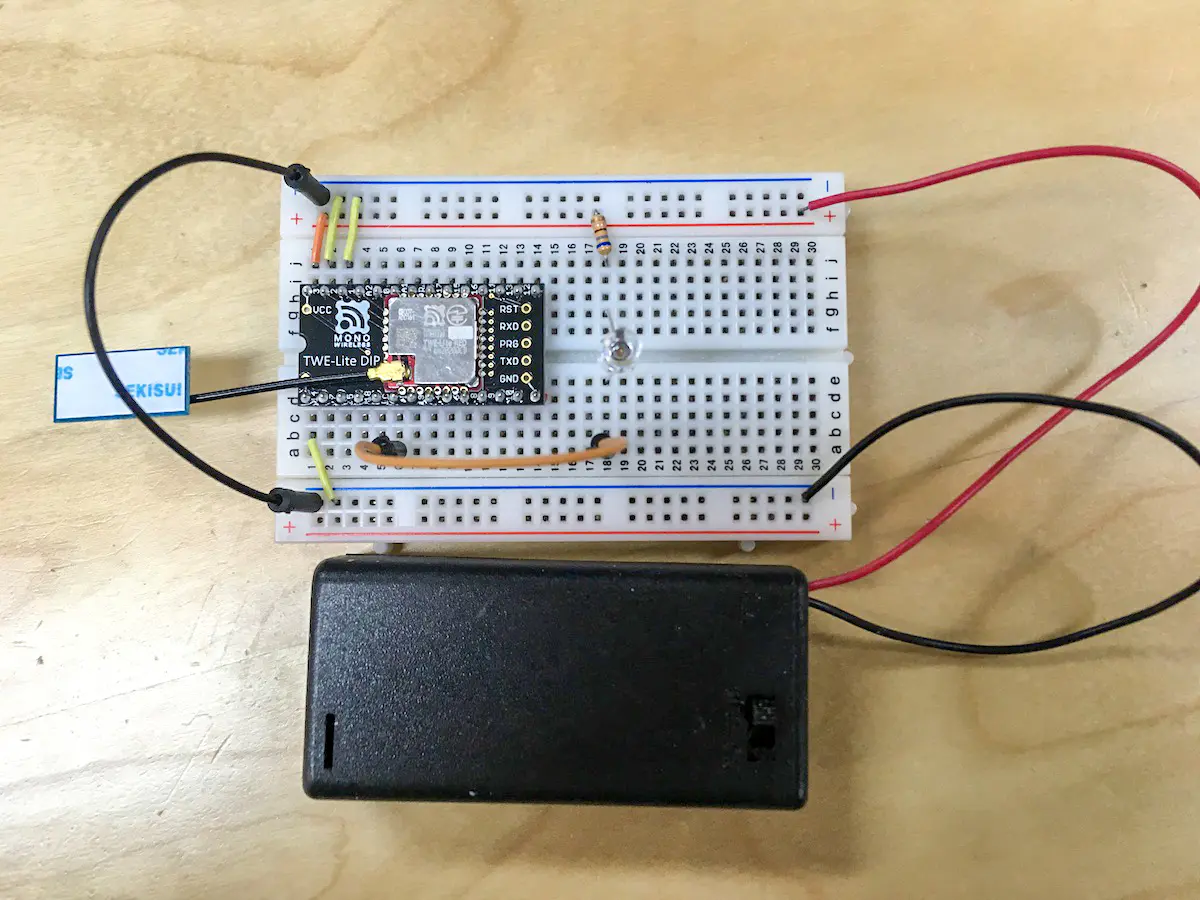 親機のシリアルIDに基づいたアプリケーションIDを生成し、それを子機へ流し込むことでグループを作成します。LED ピンへ LED を接続すると、設定の成否を確認できます。