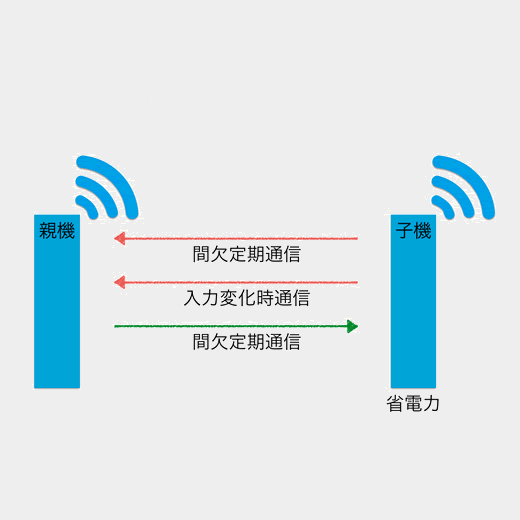 親機から送信されるデータを常時待機しているものの、子機から親機への通信で帯域を占有してしまうため、親機の入力に対する反応は鈍くなってしまいます。常に電力を消費します。