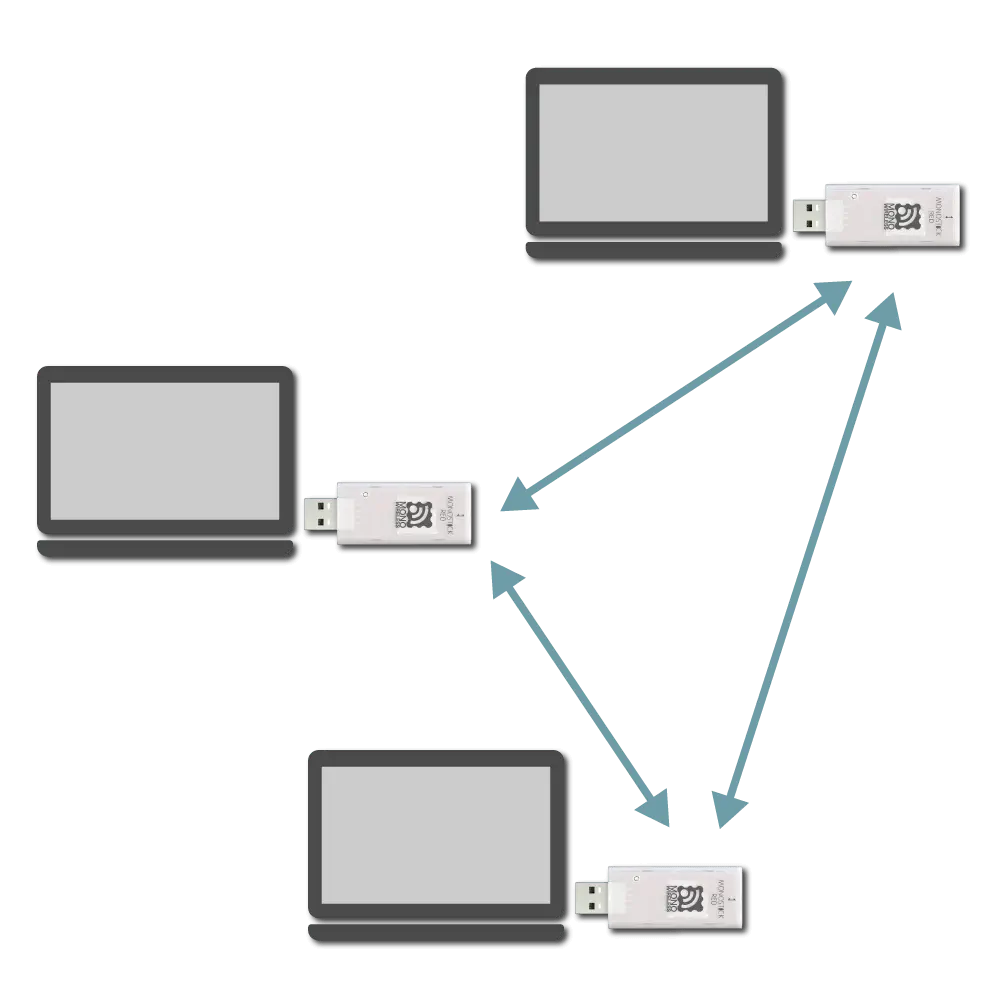 アプリケーションIDと周波数チャネルが同一であれば、どの端末へ入力したデータもほかの端末へと送信されます。